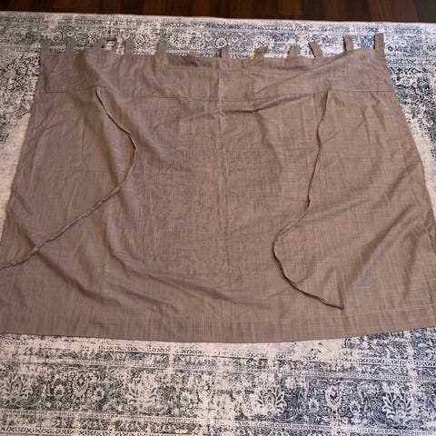 Kaunis hyväkuntoinen verhokappa tankokujalla. Hieman läpinäkyvää harsomaista kangasta. 100% puuvillaa.