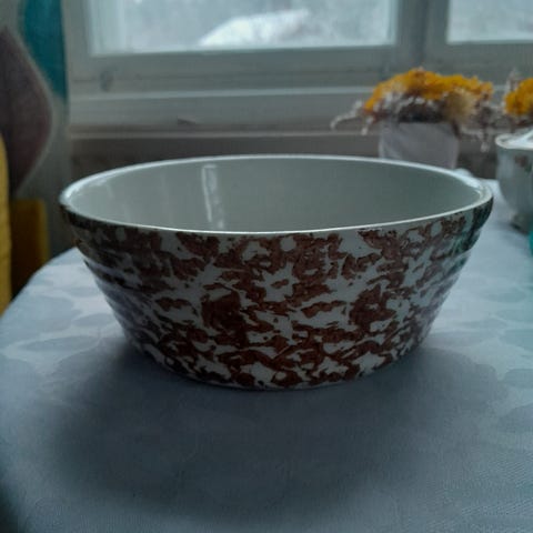 Sienitetty uunivuoka Arabia. Vetoisuus vajaa 1 litra. Halkaisija 18 cm. Reunassa pieni pala pois, näkyy kuvassa. "Kruunu Arabia Made in Finland" leimattu.