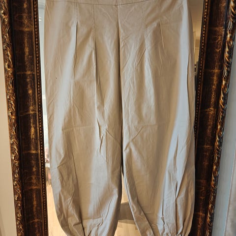 Käyttämättömäksi jääneet uudet ihanat leveät liehuhousut. Nämä olivat jo ostettaessa hieman naftit ja eihän ne sitten koskaan mahtuneet päälle. Ihan pieni kauneusvirhe on vasemman lahkeen polvitaipeen tienoilla, kun oikein tarkasti katsoo (langanveto tms.) tämä hinnassa huomioitu.