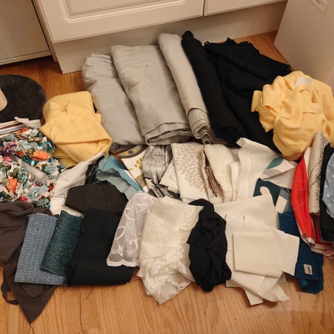 Kangas kangaspalat, joissa erilaisia kuoseja ja materiaaleja. Sisältää vaaleankeltaisen kankaan, jossa on pieniä ruskeita kuvioita, sekä tummansinisen kankaan, jossa on vaaleita pisteitä. Sopii erilaisiin ompeluprojekteihin ja käsitöihin.2 isoa palaa koko 150x 130 ja 150x160 ja pieni blyyssiä oleva pala.