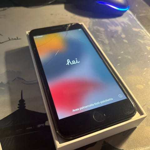Apple iPhone 7 32 GB puhelin, musta väri. Puhelimessa 32 gigatavua tallennustilaa. Mukana alkuperäinen laatikko, laturi ja kuulokkeet uudet.