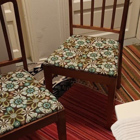 Kolme kpl 60- luvun tuolia. Ei nitku eikä natku, ovat tukevat. Alunperin olleet koivunväriset, maalattu vaaleiksi ja nyt maalaus kulunut. Kpl-hinta 15€. Vain nouto Tesomalta sovitusti.