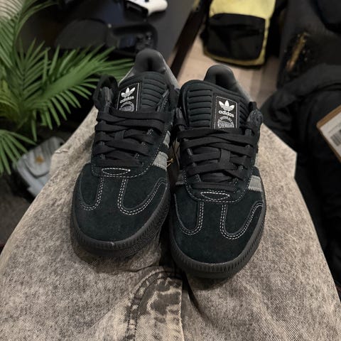 Myydään vain vähän käytetyt Adidas Samba kengät mustilla raidoilla. Hyvä kunto. Koko 42 2/3