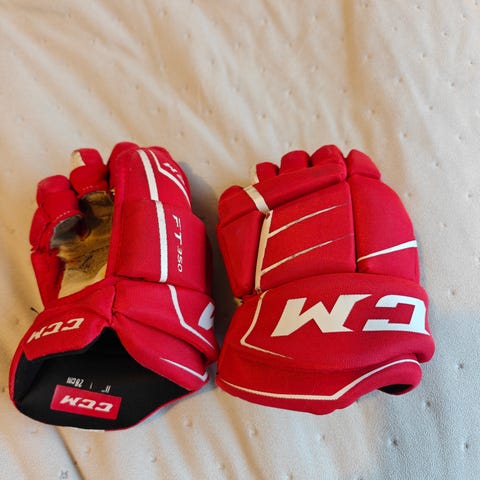 Puoli kautta käytetyt punaiset CCM Next Hanskat.