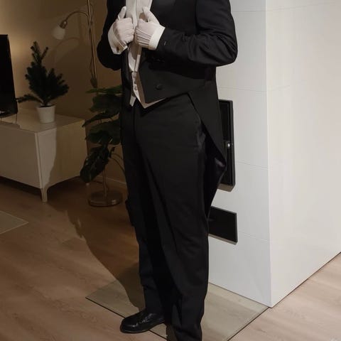 Uusi paita kokoa 50. Kaksi smokki/frakkivyötä ja rusetti.