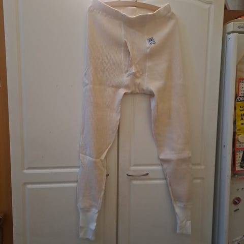 Sa/Suomen armeijan pitkiä alushousuja eli runkkupuvun housuja. Näitä on käyttänyt montaa sukupolvea intissä, legendaariset kalsarit. Varikkokunnostettuja. Eri kokoja ja eri vuosilta. Kuvassa 2 näkyy lista vuosiluvuista ja mitä kokoja vielä löytyy. Kaikissa tornileima. Hinta 5 euroa kappale. Mahtuu useampi samalla lähetyksellä. Militaria. Armeija. Sota.