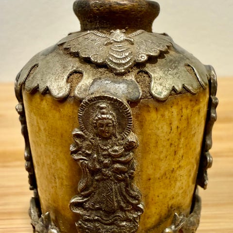 1900-luvun ensimmäiseltä puoliskolta, nuuskapullo, koristeellinen, korkki tallella. Korkeus n. 8,5 cm.