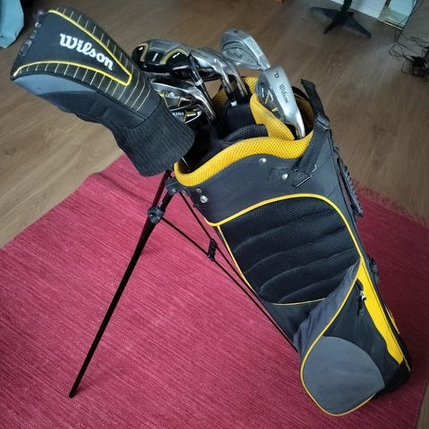 Kyllä se kesä tulee, aloita haaveilu. Myydään vanha, mutta hyvin vähän käytetty golfsetti. (ikää on enemmän vuosissa, kuin mailoilla käyttökertoja) Perustana on rauta - puolisarja, johon on lisätty erilaisia tarpeellisia mailoja. Tästä hyvä aloituspaketti. Vain käteinen, kiitos