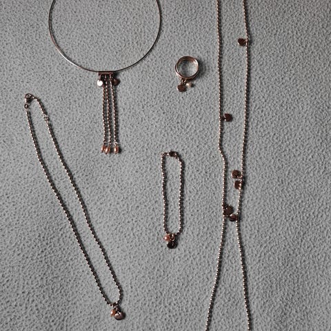 Muutama vuosi sitten lahjaksi saatu setti, mutta kertaakaan ei ole pidetty. Kaulakorua voi käyttää pitkänä tai kaksinkerroin. Korvakoruja voi käyttää usealla eri tavalla. Vaaleanpunaiset makeanveden helmet.