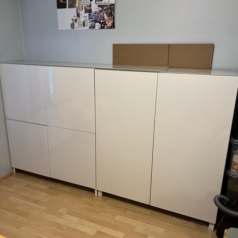 Erittäin hyvässä kunnossa oleva Ikea Bestå säilytyskokonaisuus. Värinä vaaleaksi petsattu tammikuvio. Koko 120x42x74 cm. Molemmilla puolilla on kaksi hyllylevyä.