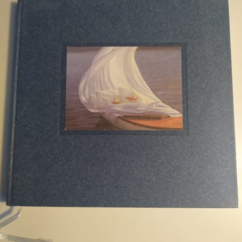 Vanha vieras/muistokirja jossa viivallisia ja tyhjiä sivuja. Kannet visakoivua. Etukannesta pieni pala pois.