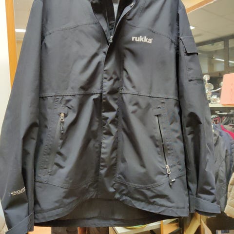Rukka miesten softshell-takki, koko XXL. Takki on musta ja valmistettu softshell-materiaalista, joka tarjoaa suojaa ja joustavuutta. Takissa on vetoketjulliset taskut ja heijastavia yksityiskohtia turvallisuuden lisäämiseksi.