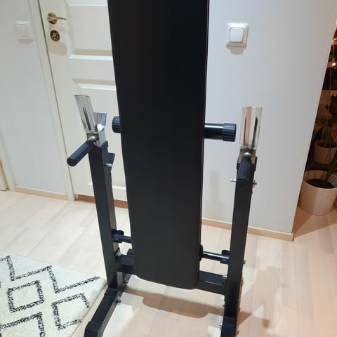 Gymstick tukeva punnerruspenkki, ehjä ja siisti. Mukana tanko sekä 10, 15, 20 kg levypainot.