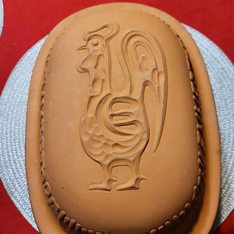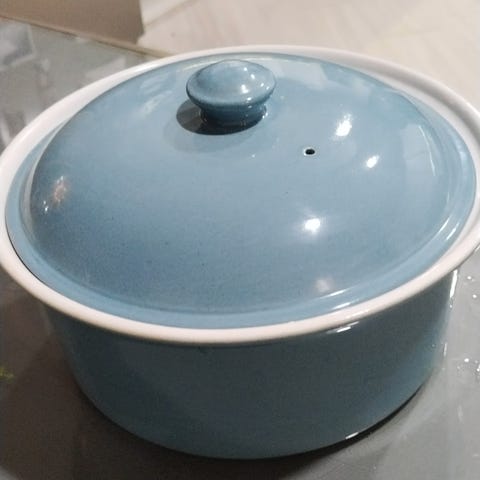Bio Gorrop saviastia kannella. Saviastia on väriltään terrakotta. Astia koostuu kahdesta osasta, kannesta ja pohjaosasta, jotka sopivat yhteen.