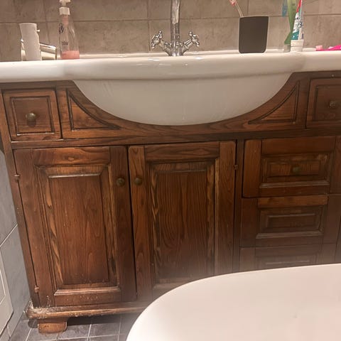 Noudetaan pikaisesti Polarian hyväkuntoinen allaskaappi tai laatikosto, mielellään altaalla. Materiaalina metalli / teräs, sillä tulee lähelle suihkua.