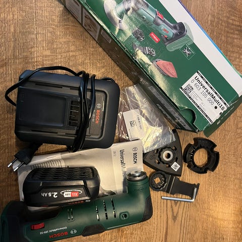 Iskevä akkuruuvinväännin ruuvauskärjille ja 1/2 hylsyille. Käytön jälkiä, toimii niinkuin pitää. Kolme nopeutta ja kaksi käyttötilaa eri ruuveille.