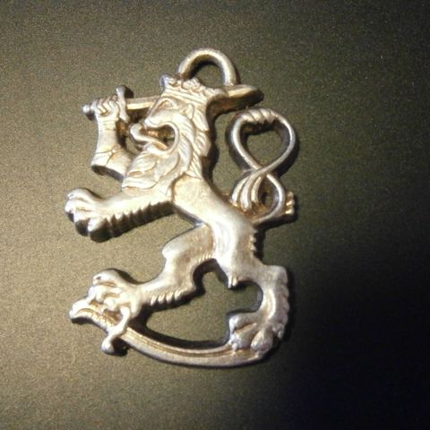 Varsi iso Suomileijona riipus. Riipuksen takana stanssit "JP" ja "830".