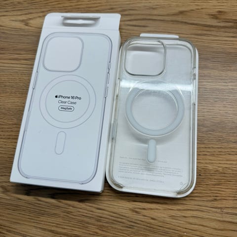 Käyttämättömät iPhone 16 plus puhelimen läpinäkyvät kuoret. Jämäkkä "takalasi". MagSafe-yhteensopivalla renkaalla.