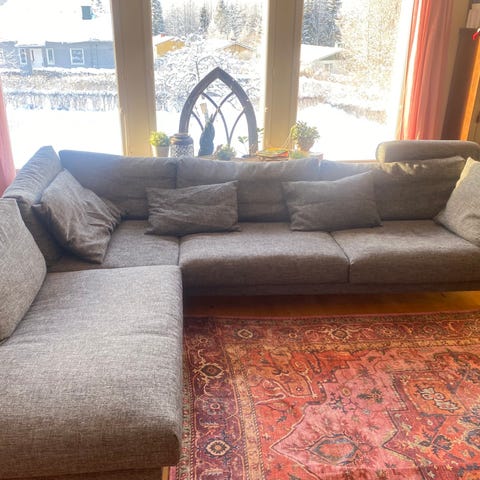 Kulmasohva, 195/85/130 cm, pieni, tyynyt on kiinnitetty jalustaan, paksu harmaa kangas, sohva on siisti, kolhuton, koostuu kolmesta moduulista: kulmamoduulista ja yhdestä tai kahdesta istuimesta, vaihdettavissa, kaikki kangas on irrotettu ja pesty. Huonekalujemme etuna on, että ne ovat täysin puhtaita, kolhuttomia ja hajuttomia. Tarjoamme toimituksen Lappeenrantaan ja ympäröivälle alueelle.
