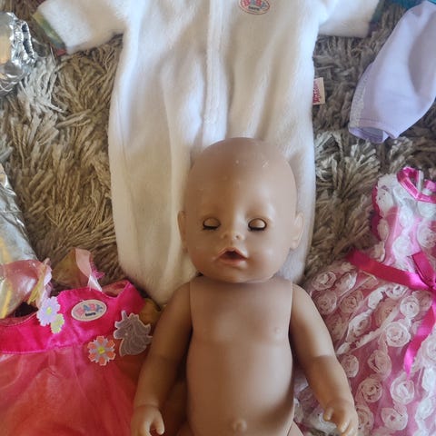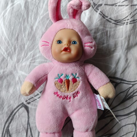 Baby Bjorn vauvanukke, itkee oikeita kyyneleitä ja pissaa/vaikka mukana. Mukaan tulee vaatteet ja tutti, jolla menee silmät auki/kiinni.