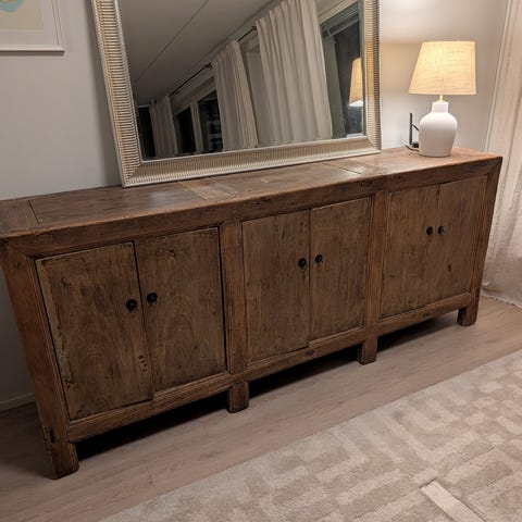 Myydään vanha hieno senkki. Jotain ajan jälkeä: yksi jalka heiluu jonkun verran ja ovet aukeilee herkästi. Hinnassa huomioitu.
