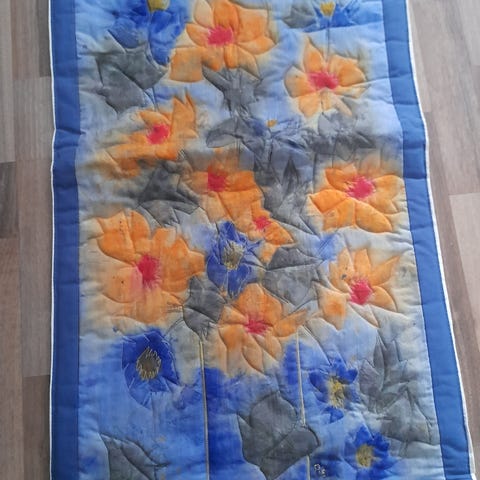 Koko 56x90cm.käsinvärjätty. puutangot sekä ylhäällä etta alareunassa.lähetyskulut 11e