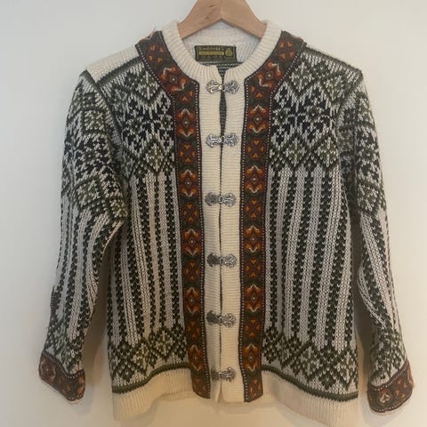 Hyvä kunto, käytetty pari kertaa. Todella lämmin, paksua villaa. Koko on S, mutta reilu malli, unisex. Itse olen 173cm ja mahtuu hyvin, kuten kuvassa näkyy. Ostettu Norjasta.