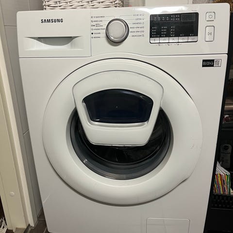 Samsung edestä täytettävä pesukone. Valkoinen väri, etulataus. Sopii kotitalouskäyttöön pyykinpesuun.
