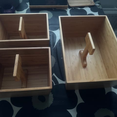 Myydään Ikea Råvaror merkkiset käyttämättömät, tummaa paksua farkkukangasta olevat säilytyskassit. Kassin voi ripustaa pienestä tai isosta lenkistä. Isompi, leveä hihna mahdollistaa hyvin myös olalla kantamisen. Toimii säilytyskassina, pyykkikassina, kuljetukseen tai täytä vaikka isoksi istumatyynyksi ja leikkaa hihnat pois. :)