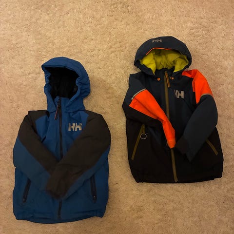 Uutena ostettu ja yhdellä lapsella käytössä. Takki kokoa 116 ja housut 110, näin olleet sopivat yhtä aikaa😁