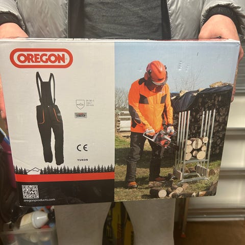 Iskemätön Oregon Yukon moottorisahakypärä avaamattomassa paketissa. Tämä tuli kylkiäisenä muun kaupan yhteydessä ja meikäläisellä ei tarvetta kun tallista löytyy jo kaksi.
