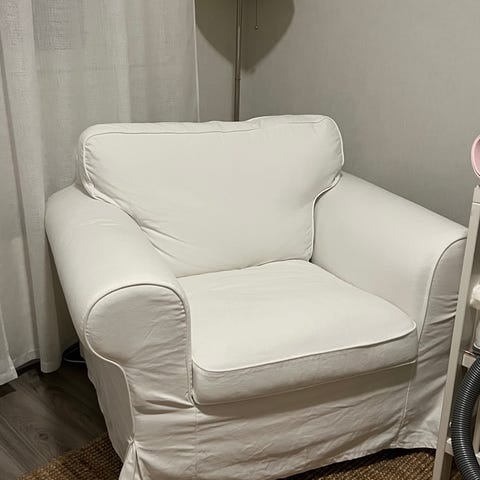 Myyntiin Ikean Ektorp nojatuoli. Irroitettavat päälliset. Kunto hyvä. Ei omaan silmään ainakaan näkyviä vikoja tai tahroja. 100€.