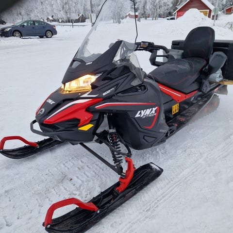 Siistikuntoinen puolipitkällä telalla oleva kelkka.