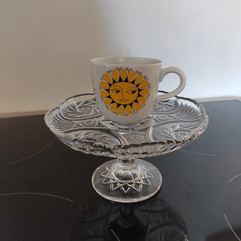 Esteri Tomulan Arabialle suunnittelema Mars lastenkuppi. Koriste oli tuotannossa v. 1967-74. Kupin korkeus on 5,5 cm, halkaisija 6 cm ja tilavuus 10 cl. Lautasen halkaisija on 10,8 cm. Myynnissä oleva kuppi on ehjä ja muutenkin erittäin hyväkuntoinen ja naarmuton.