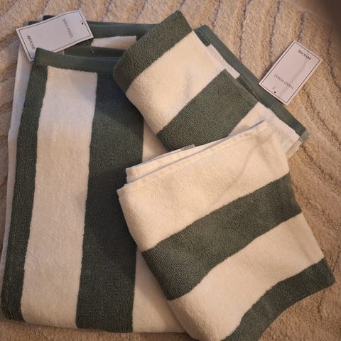 Sammalenvihreät pyyheliinat,2 käsipyuhettä ja 2 kylpypyyhettä