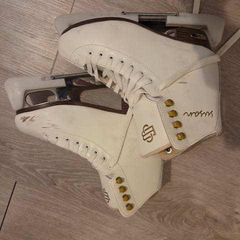 Salsa Elegant luistimet, koko 39. Valkoiset taitoluistimet, joissa on nauhakiinnitys. Soveltuvat luistelun harrastamiseen.