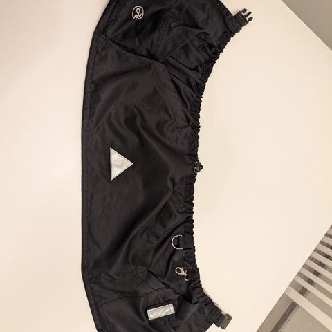 Hyvin vähän käytetty, itse ommeltu treenitasku koiraharrastuksiin (tai muuhunkin). Vyötäröä saa säädettyä yläreunan kuminauhalla, maksimi vyötärönympärys n. 120 cm, saa kiristettyä ainakin 80 cm ympärykselle asti. Treenitaskun korkeus 30 cm.