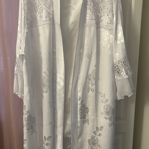 Myydään kuvan Victoria’s Secretin aamutakki, jonka selässä lukee Bride. Täydellinen esim. hääaamun kuvauksiin ja laittautumishetkiin. Koko S mutta väljä. Kokonaismitta kainalosta kainaloon noin 56 cm. Kokonaispituus noin 90 cm.