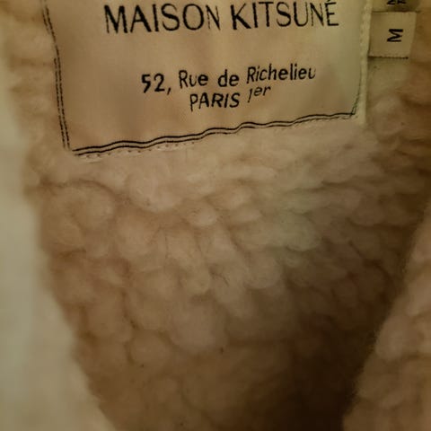 Takissa on hankintahetkellä ollut miehustassa pieni viilto (luultavasti mattoveitsestä tullut), jonka olen korjauttanut ompelijalla. Etsin korjattua kohtaa kuvaa varten ulkona luonnonvalossa tuloksetta - sormituntumalla kohta löytyi ja yritin dokumentoida sen. Korjausompelu on tehty niin hyvin ettei sitä käytännössä näy ollenkaan. Takki on kuin pakasta vedetty ja sitä on käytetty kerran tai kaksi.