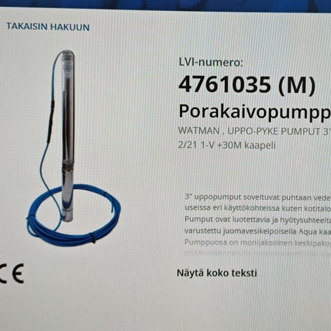 Myydään toimiva ja tehokas clean uppopumppu. 1100w ja max 25000l/h.