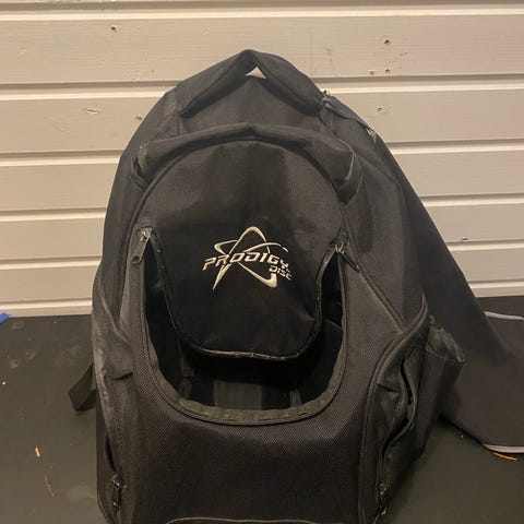 Frisbeegolf bägi on hyvässä kunnossa, putteritaskussa pikku reinö, mutta ei vaikuta toimintaan millään tavalla.