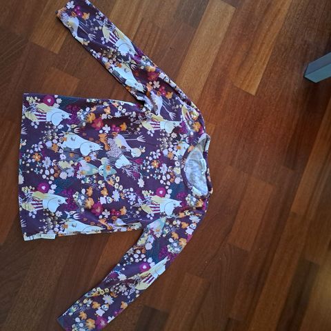 Myydään kaksi pitkähihaista Muumi-paitaa, koot 110 ja 122.