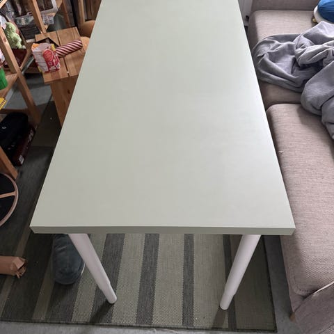 Myydään ylimääräiseksi jäänyt Ikean työpöytä, koko: 160x40. Korkeussädettävä. Tumma levy, pähkinäpuu. Mustat metallijalat. Pieni kolhu levyssä.