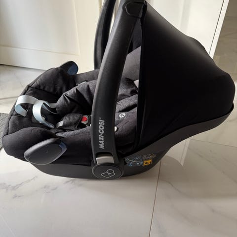 Myyntiin maxi-cosi turvakaukalo. Mukaan aivan vauvasta asti oleva tuli joka kuvassa paikoillaan.