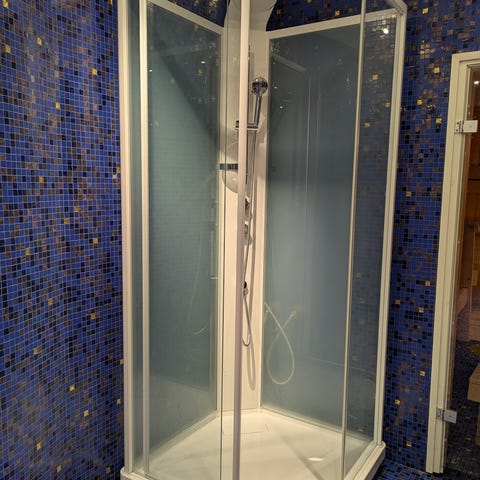 nykyisessä kylpyhuonejärjestyksessä ei enää tämän mallinen kaappi toimi, muuten ollut erinomainen! INR merkkinen laadukas suihkukaappi kahdella kaarevalla ovella 6mm lasista. Ovh, 1000e