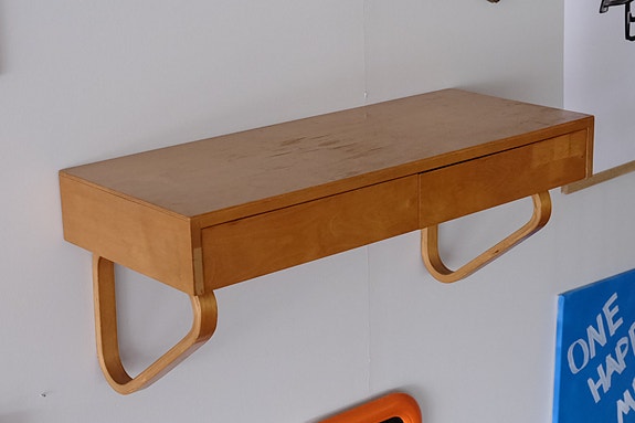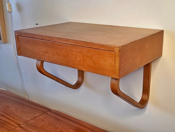 Nahkainen lepakkotuoli, kulutetulla pinnalla. Ompeleet kaikki uusittu.