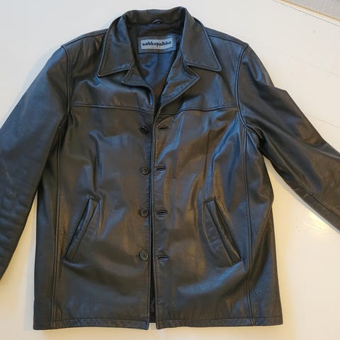 Miesten musta Saki merkkinen nahkatakki, koko 60. Jotain pientä likaa mutta varmasti löhtis jollain nahalle sopivalla aineella. Nouto