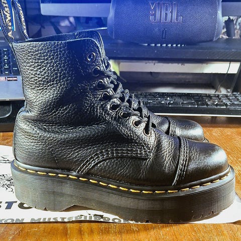 Myydään hyvässä kunnossa olevat Dr. Martensin chelsea bootsit. Otaksun, että näiden malli on 2976 Felix Vegan Platform Chelsea.