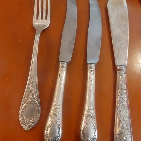 Kultateollisuuden vintage Suomi aterimet. Nämä olleet muistaakseni yhden kerran käytössä.