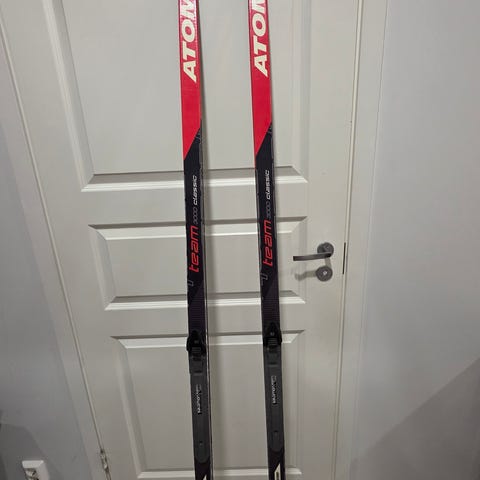 Atomic perinteisen sukset, 209 cm. Salomon siteet. NNN-kantavuus. Ne toimivat parhaiten noin 80-95 kg painaville hiihtäjille. Sukset tarvitsevat voitelua (eivät karvasukset). Hinta: 45 euroa.